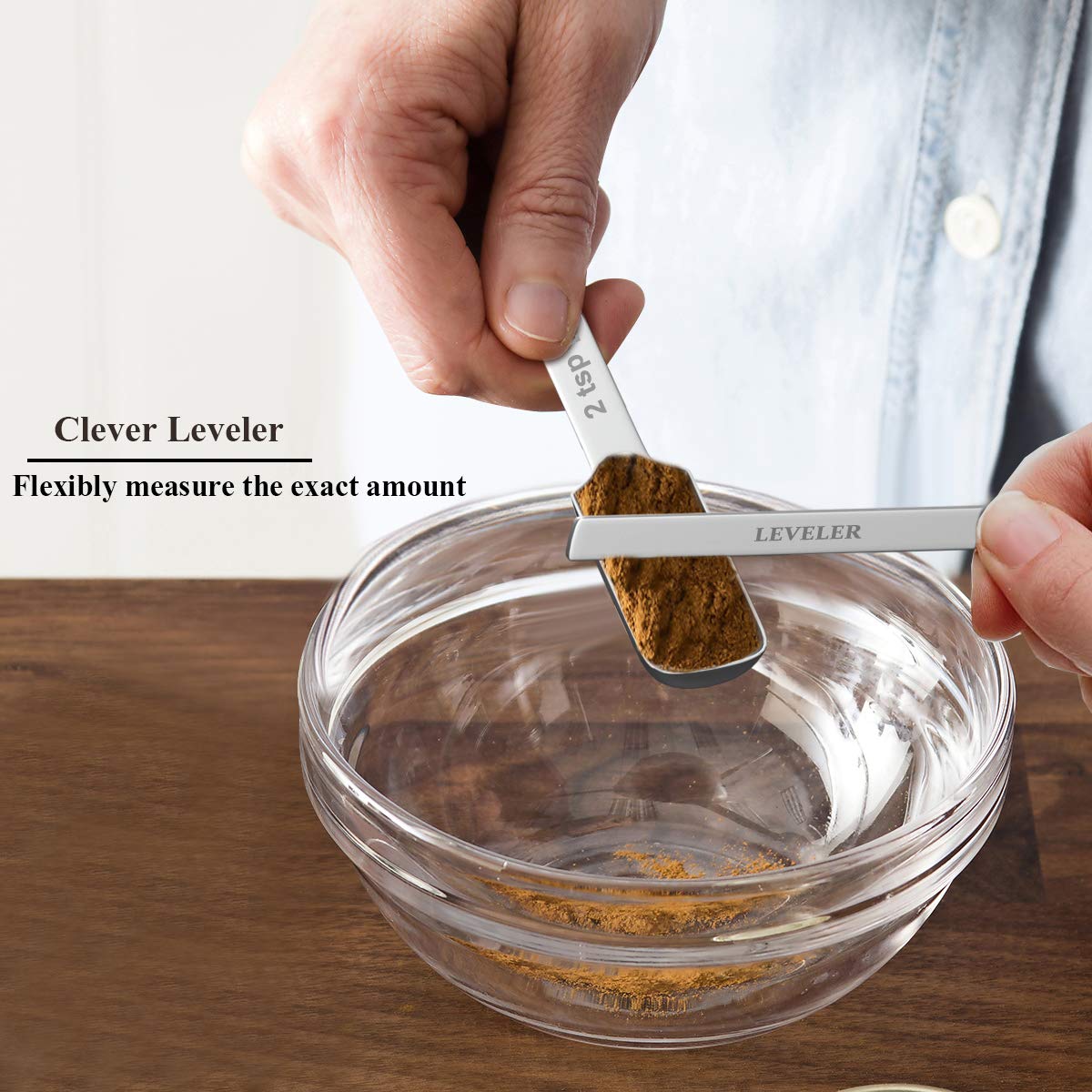 SET OF 21: This package includes 7 Measuring Cups (1/8 cup, 1/4 cup, 1/3 cup, 1/2 cup, 2/3 cup, 3/4 cup, 1 cup), 8 Measuring Spoons (1/16 tsp, 1/8 tsp, 1/4 tsp, 1/2 tsp, 3/4 tsp, 1 tsp, 2 tsp, 1 tbsp), 1 Leveler & 5 Mini Measuring Spoons (Tad, Dash, Pinch, Smidgen, Drop), various sizes meet all your baking needs