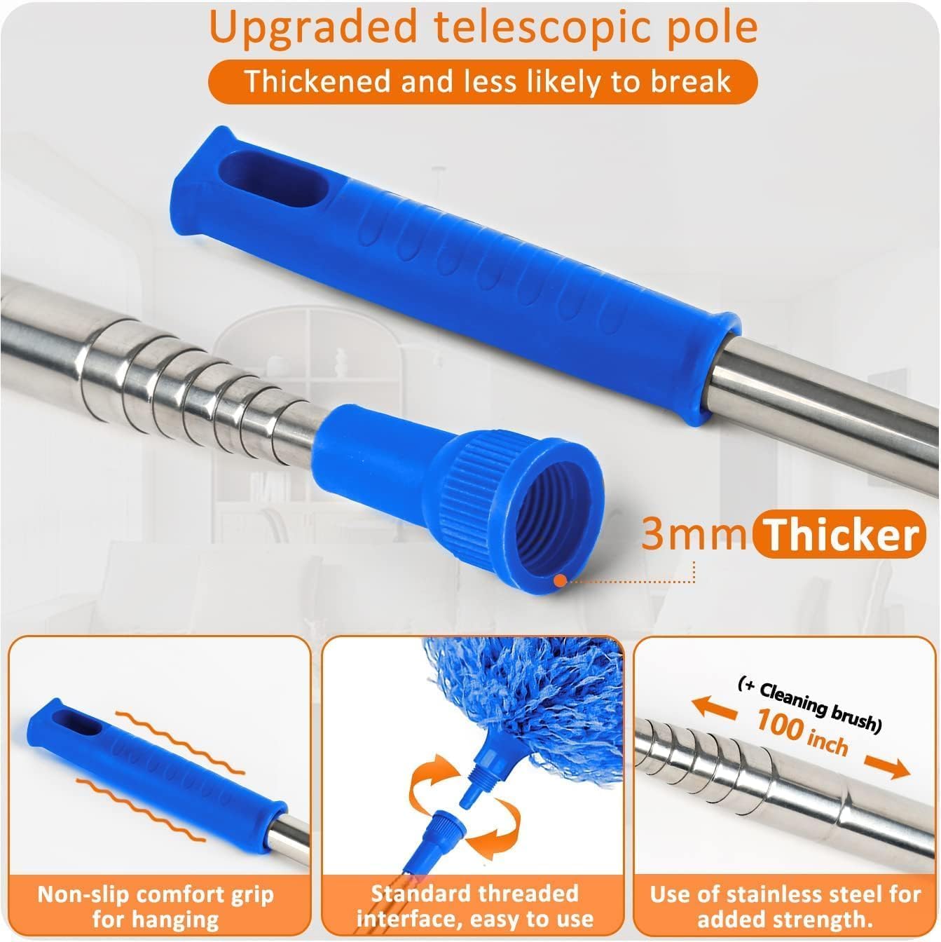 Multi-purpose Dust Cleaner: This dust cleaning stick also functions as a roof cleaning brush, making it versatile. Its web cleaner broom long extendable design ensures effective dust cleaning, including as a ceiling duster with long handle.