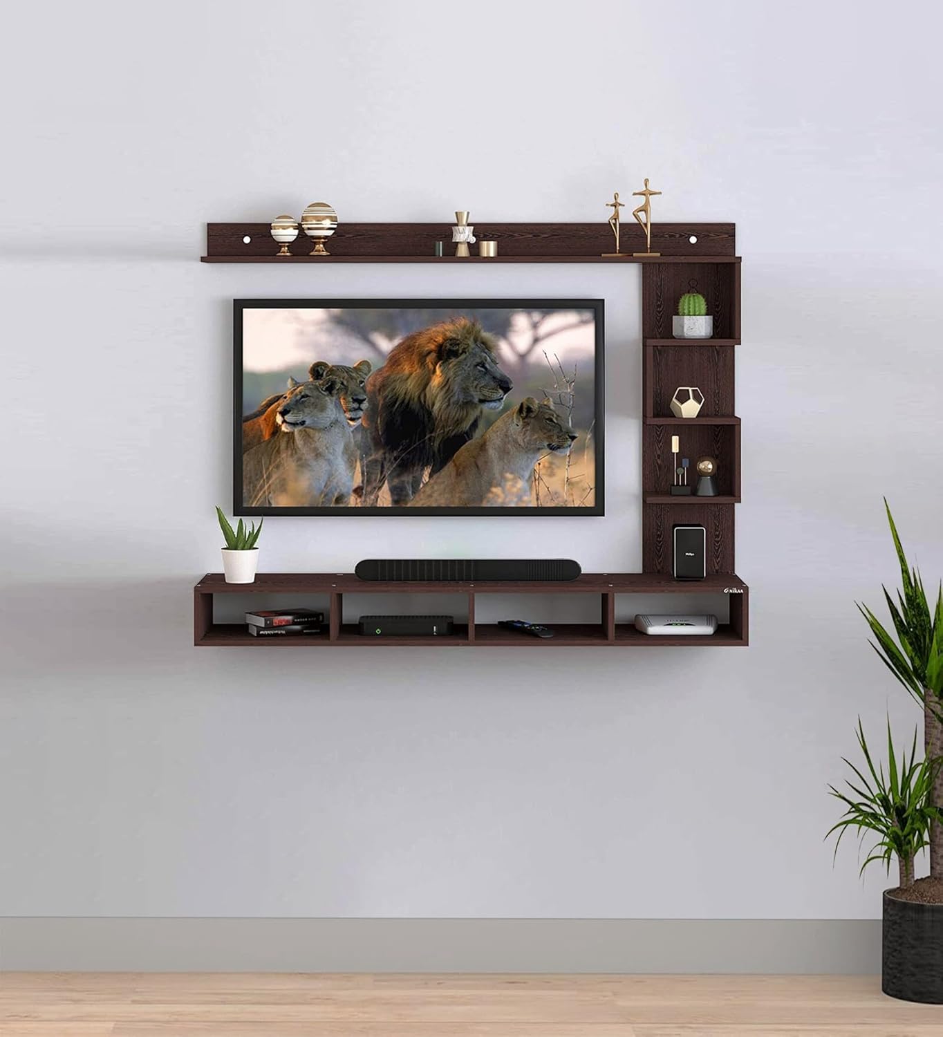 This versatile wall mounted TV stand from VARS DECOR provides functional storage space for your living area. Featuring three spacious shelves, it offers convenient placement for media devices, decorative accents and accessories within easy reach. Sturdy metal construction supports up to 88 pounds, securely holding your television in place while leaving floor space unobstructed. Sleek matte black finish complements a variety of interior styles for seamless integration into your home. Installation is simple with included mounting hardware, keeping your entertainment center neatly wall-mounted where you want it. An elegant furnishing that maximizes both visual appeal and practical functionality.