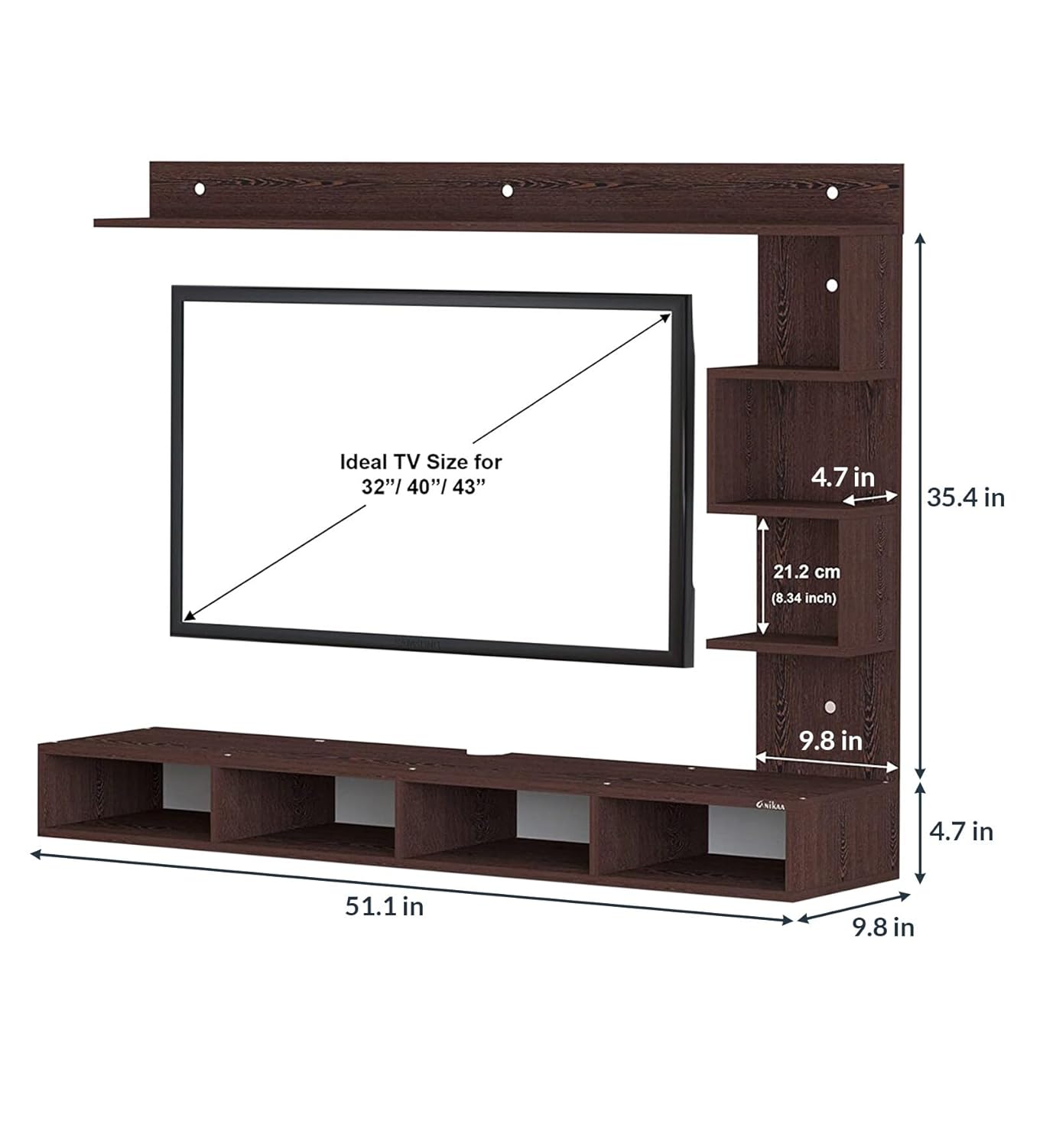 VERSATILE DESIGN: This wall mounted TV stand features adjustable shelves to accommodate TVs up to 55 inches and storage space below for components, media, and decor.