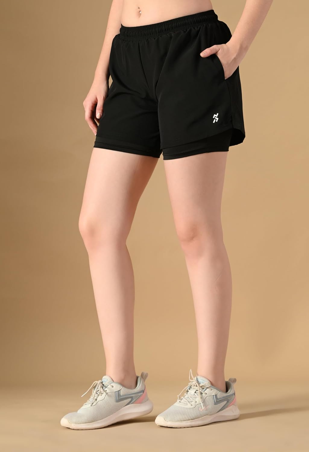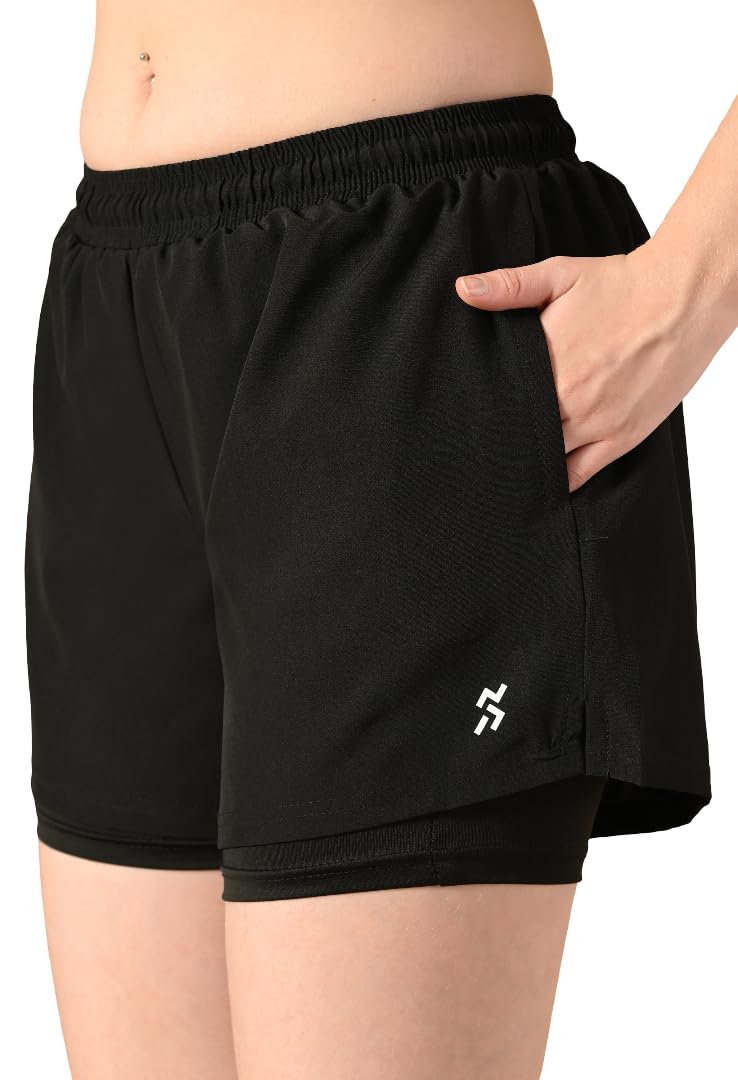 Elevate your activewear game with House Of Fitness Women’s Black Dual Layer Shorts. Designed for high-performance comfort, these 2-in-1 athletic shorts feature a built-in inner liner that offers added support, coverage, and anti-chafing protection during intense workouts. The quick-dry, breathable fabric keeps you cool and sweat-free, while the elasticated waistband provides a secure yet flexible fit. The lightweight outer layer allows unrestricted movement, making these shorts perfect for running, gym training, yoga, cycling, or daily workouts. Functional side pockets let you carry essentials like keys or cards with ease. Finished in a sleek black colour, these dual layer shorts deliver a flattering fit and versatile style that pairs effortlessly with any workout top. Built for performance, comfort, and everyday wear, they’re a must-have for an active lifestyle.