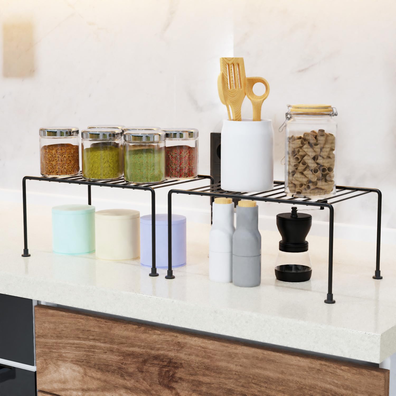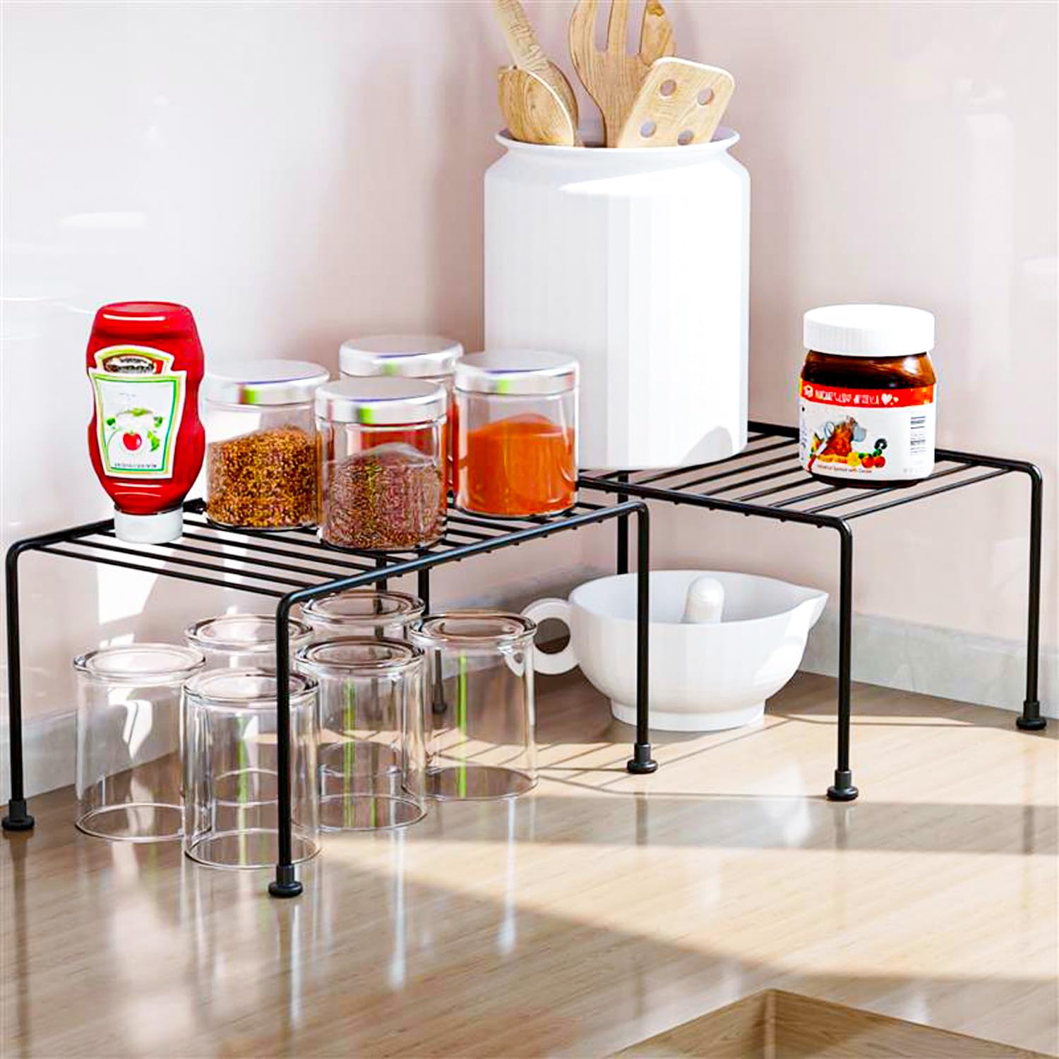 VERSATILE USAGE: Ideal for various spaces such as the kitchen, bathroom, cabinets, office floors, or platforms. It can also be utilized for creating partitions or maximizing space for storing multiple products.