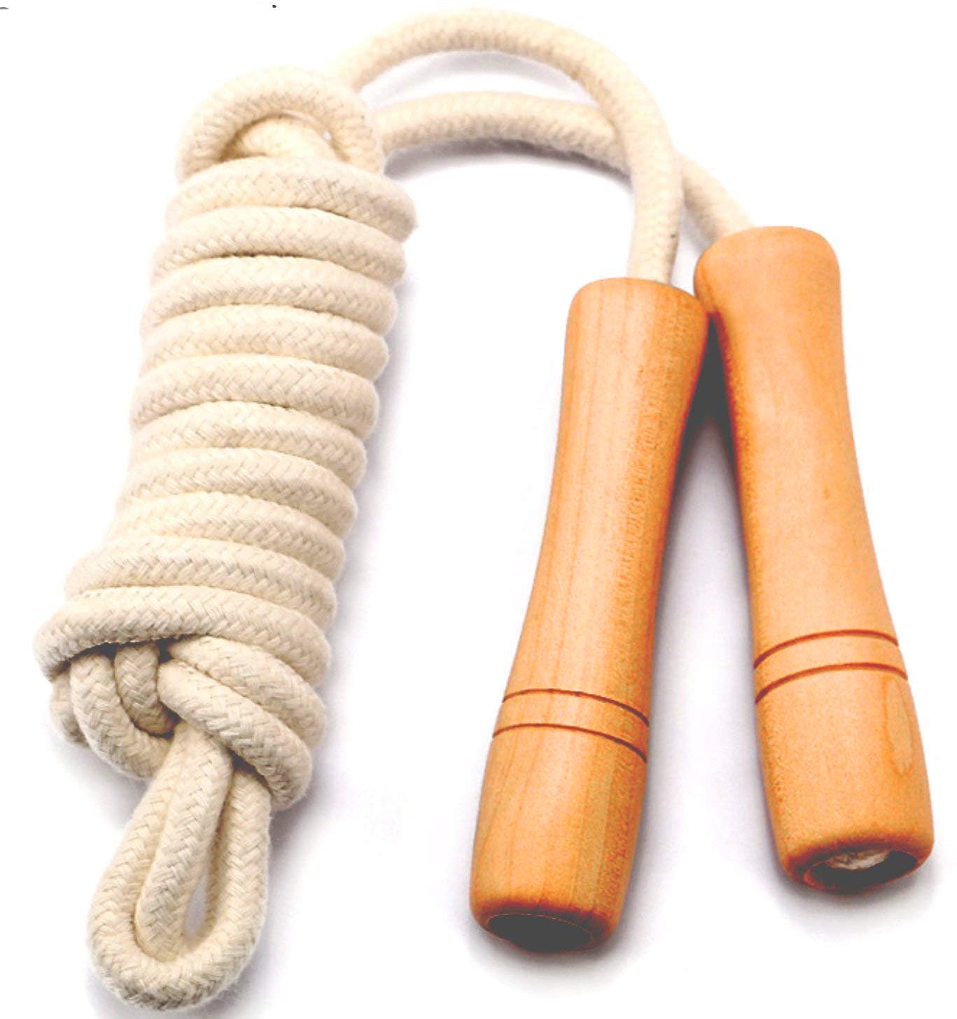 Wooden Jumping Skipping Rope | Unisex | Brown Handle | White Rope | Exercise & Fitness & Workout |