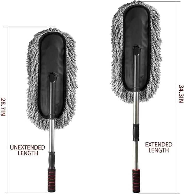 𝐑𝐞𝐚𝐜𝐡𝐞𝐬 𝐄𝐯𝐞𝐫𝐲𝐰𝐡𝐞𝐫𝐞 𝐰𝐢𝐭𝐡 𝐄𝐚𝐬𝐞: This extendable car duster boasts a sturdy telescopic handle made from thick stainless steel. It adjusts from 27 inches to 33 inches, making it perfect for reaching even the trickiest spots on your car or truck. No more bending or straining! Comfortable Cleaning: The high-quality stainless steel handle extends smoothly and features a soft foam grip for maximum comfort and control while you clean.