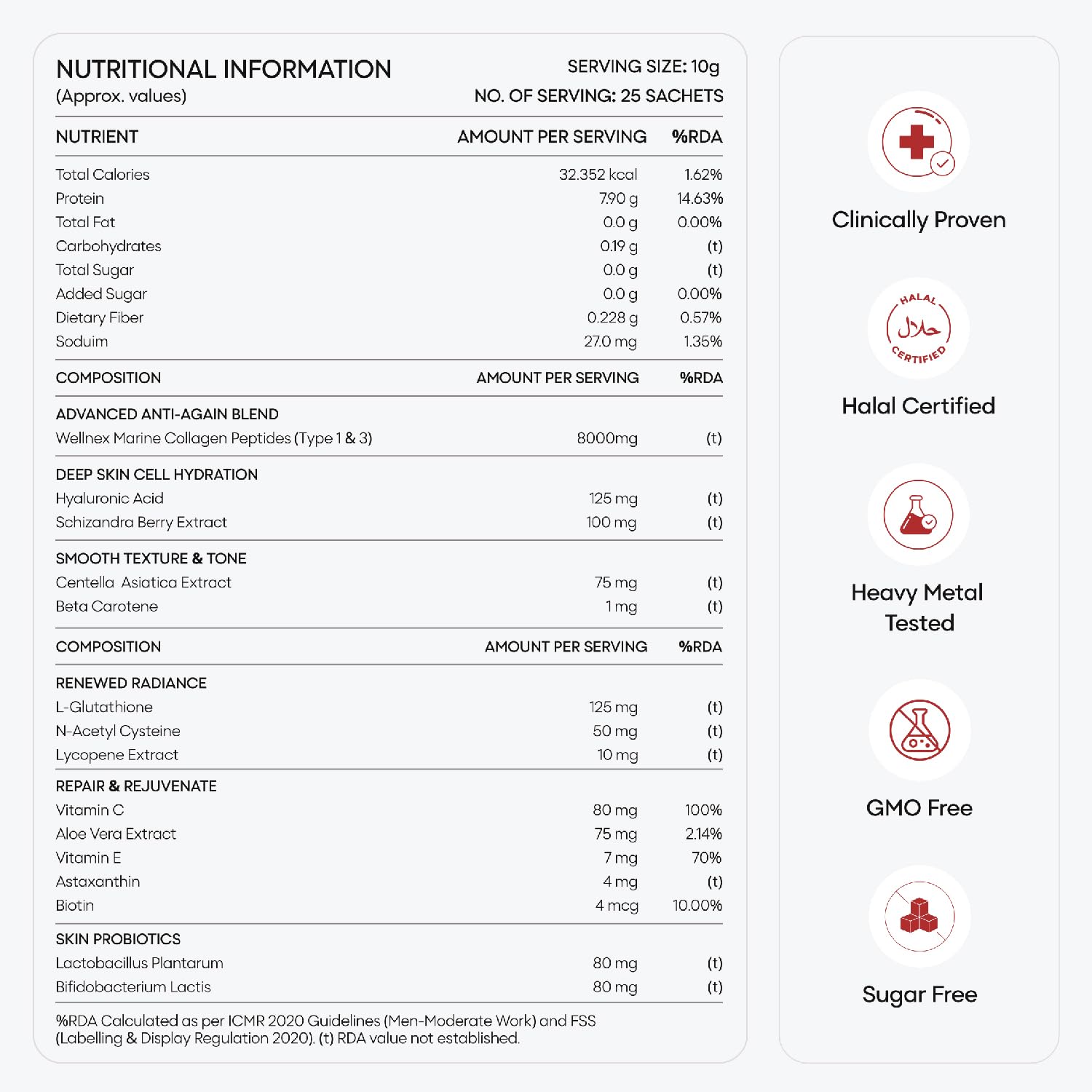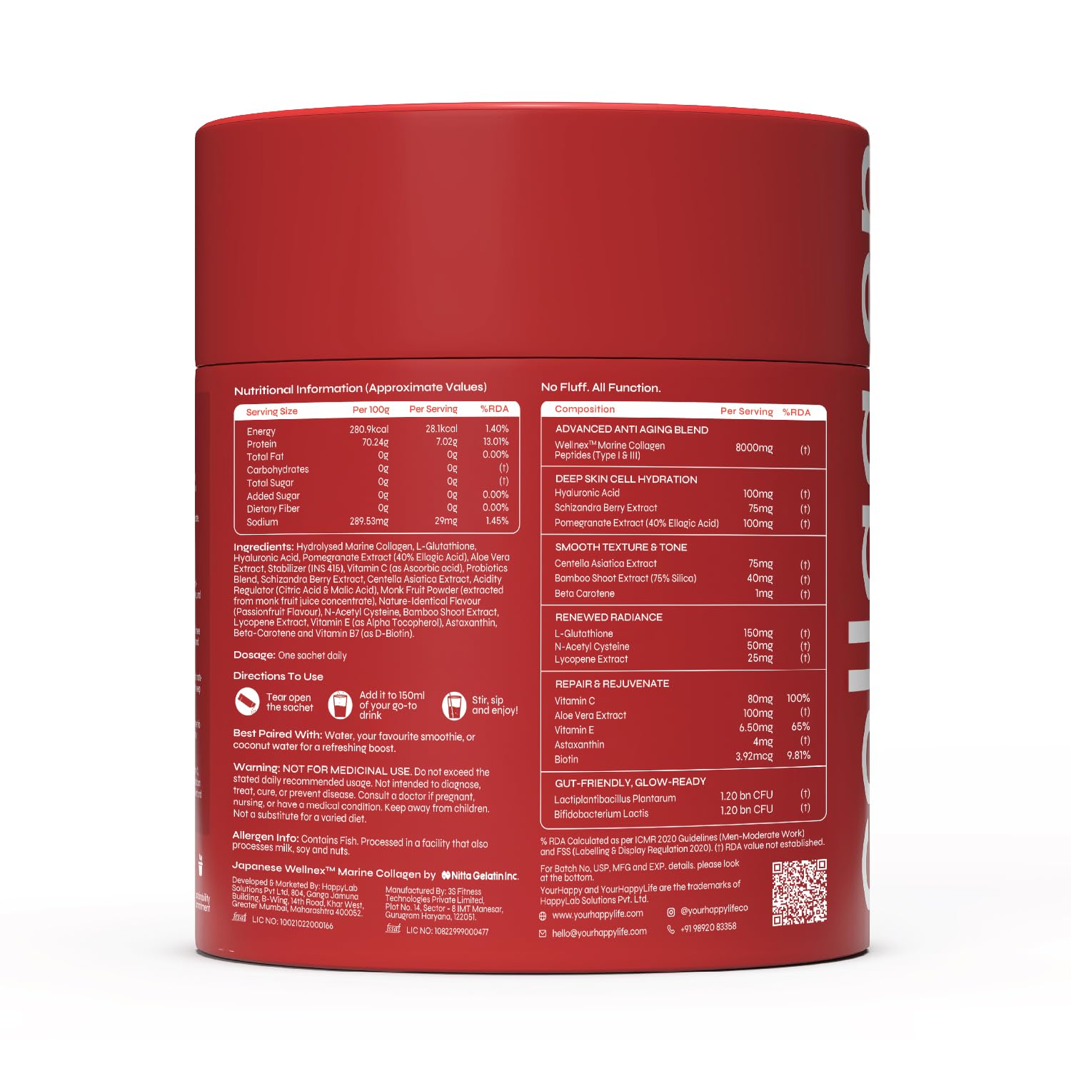 Science-Led Beauty From Within: Powered by 8000 mg Wellnex Japanese Marine Collagen and 16 synergistic skin-loving ingredients, this clinically studied formula supports skin hydration, elasticity, and wrinkle reduction, is hydrolyzed to ~3000 Daltons for optimal absorption and easy digestion, and is clean-label with zero sugar, preservatives, or fillers, naturally flavored with passionfruit and sweetened with monk fruit for a smooth, delicious daily routine.
